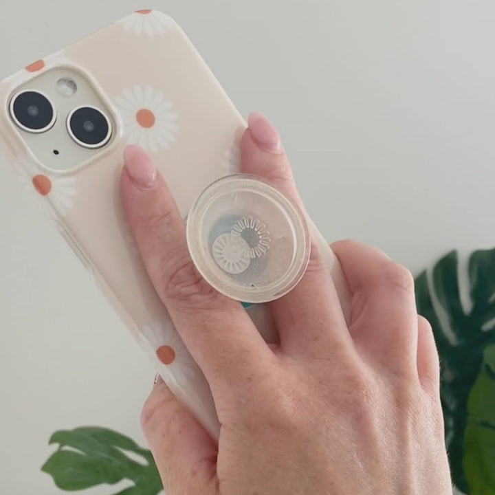 Add a touch of sparkle to your phone with the PopSocket Grip in Clear Silver Glitter. With a durable, firm grip, you can securely hold your device while showing off your unique style. The glittery finish is sure to be a conversation starter.