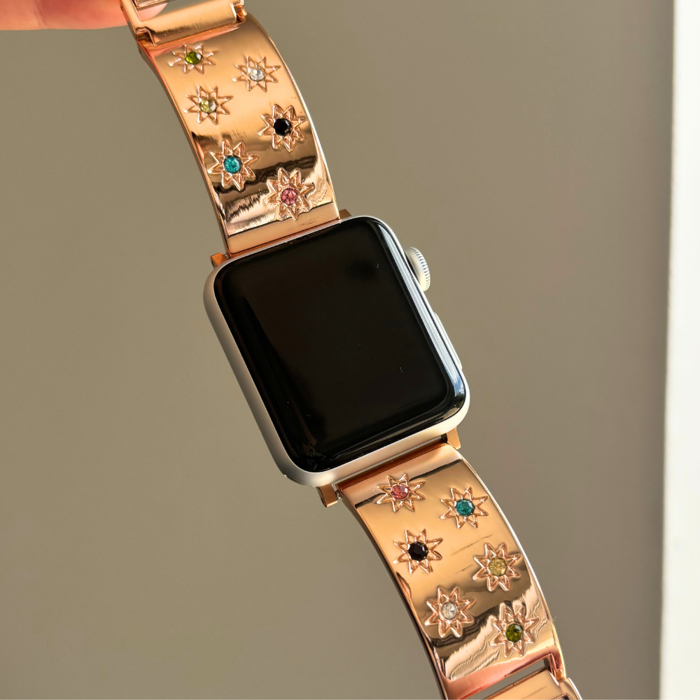 Ibiza Coloured Stone Apple Watch Strap - Rose Gold