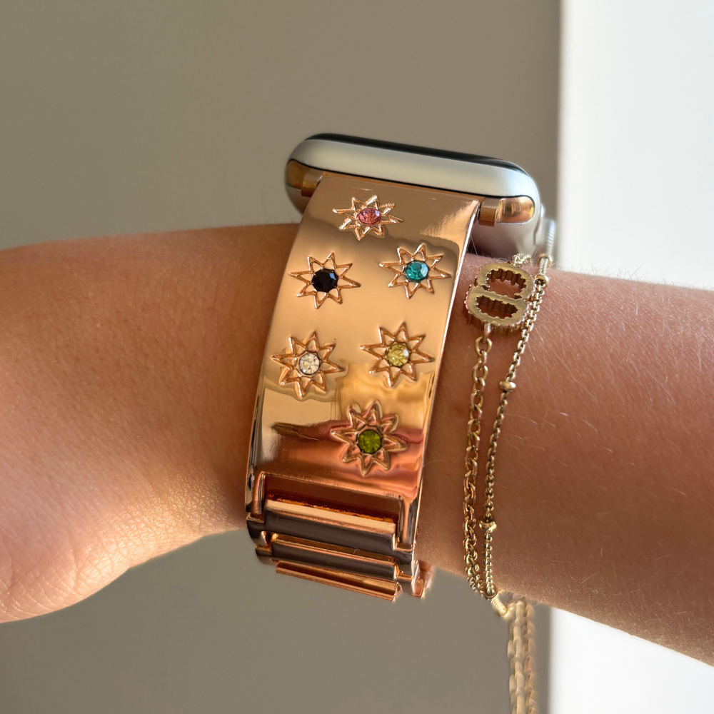 Bring some dreamy, sun-kissed sparkle to your wrist with our Ibiza Coloured Stone Apple Watch Strap in Rose Gold. Designed for the girls who love their accessories sweet, stylish, and just a little bit magical, this strap is dotted with delicate coloured stones that shimmer like a summer sunset on the beach. 💫🌸