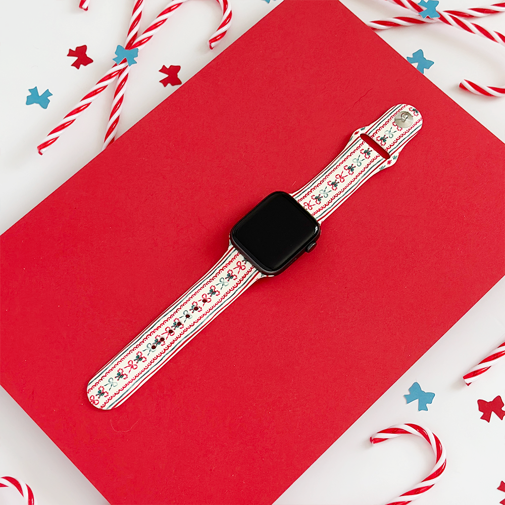 Step into the festive season with flair with the Let It Bow Apple Watch Strap – a delightful accessory that combines festive cheer with stylish sophistication! This charming strap features an enchanting design of beautifully tied bows in a vibrant array of seasonal colours, adding a whimsical touch to your wrist that’s perfect for every occasion. Whether you’re attending a holiday gathering, running errands, or just spreading cheer at home, this strap ensures you do it all in style!
