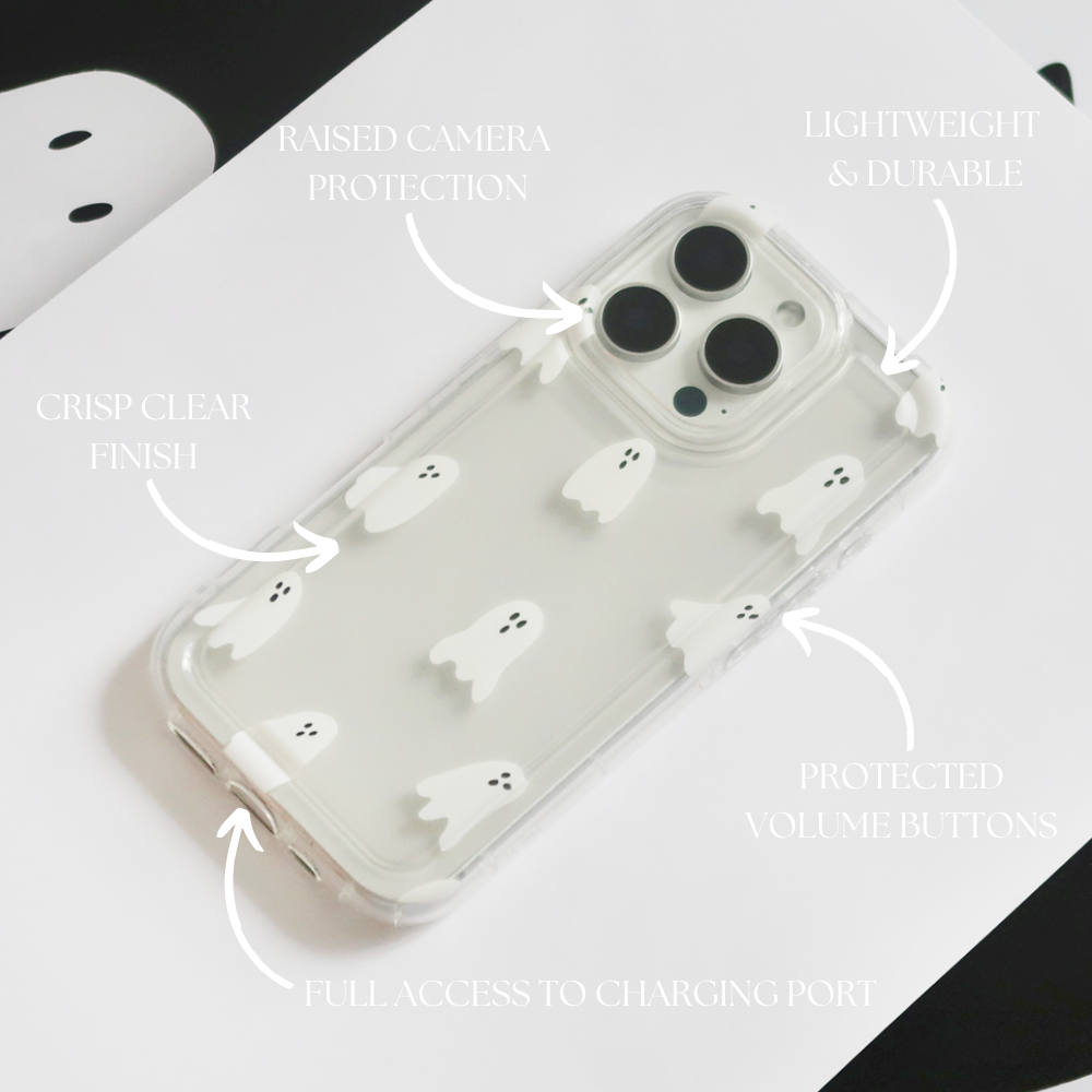 Our Clear Phone Case – Cute Ghosts is here to bring a sprinkle of spooky sweetness to your everyday. Featuring a friendly little gang of pastel ghosts, it’s the perfect way to get into the Halloween spirit without a fright in sight.