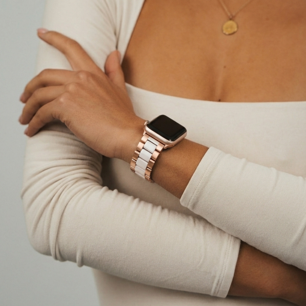 Stainless Steel Apple Watch Strap - White & Rose Gold