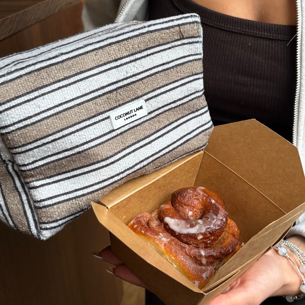 Practicality meets retro charm with the Towel Makeup Bag in Retro Stripes.