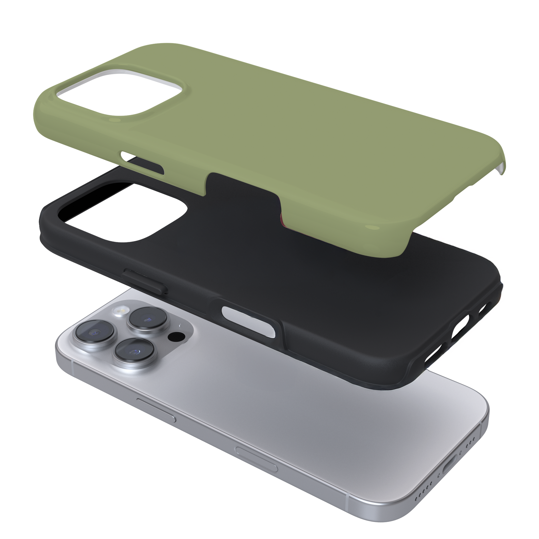Expanded view of an olive phone case on a white background